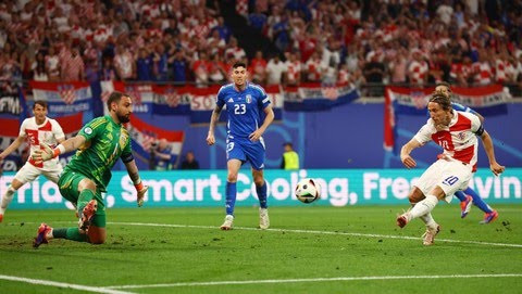Bola rebound dari tendangan Ante Budimir yang dimentahkan Donnarumma bergulir di muka gawang dan tanpa ampun ditendang Modric menggunakan kaki kiri untuk membuat gawang Italia bergetar. Skor pun berubah jadi 1-0.