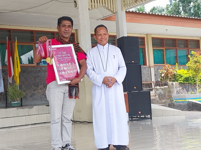 Mereka memperlihatkan kepada publik 3 medali emas dan piagam penghargaan yang digondol dari Bali International Choir Festival.