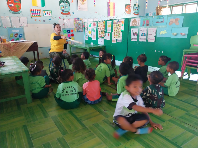 Kini PAUD Lili dengan 4 orang tenaga pengajar, tengah membenum 40 anak PAUD. Para kelompok belajar ini, tidak saja berasal dari internal anak-anak prajurit TNI-AD, tapi boleh juga dari kalangan umum.*** (eny)