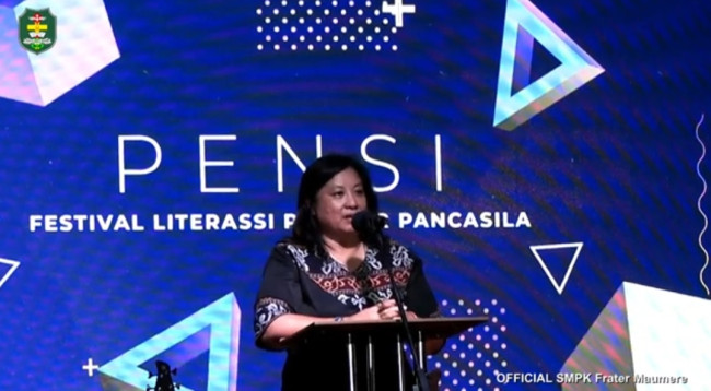 Ketua Ikatan Alumni SMPK Frater Maumere (Kami Spater Mof) Margaretha Movaldes Da Maga Bapa memberikan apresiasi yang tinggi atas kreatifitas literasi, seni dan bahasa yang ditampilkan pelajar SMPK Frater Maumere.